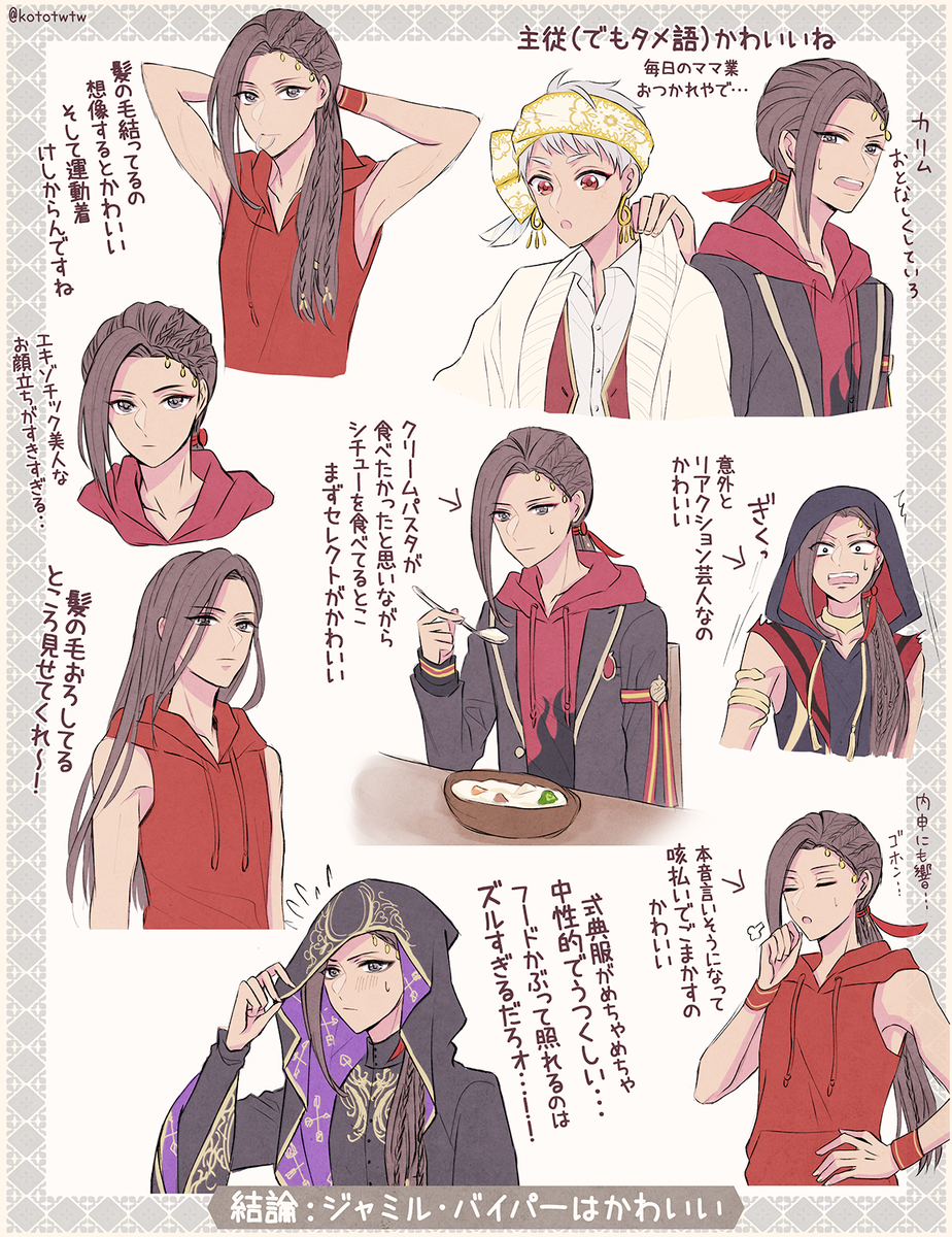 練習のために毎日コツコツいろんなジャミルくん描いてたら、ちょっと描き慣れた気がする💪結果可愛いところまとめみたいになりました🤭