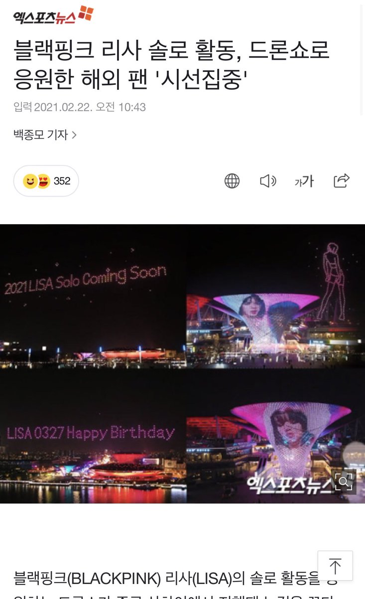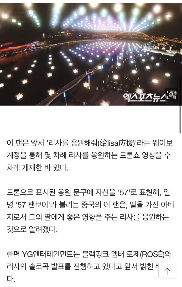 จารึกว่าเกาหลี🇰🇷ลงข่าว #LISA project คร่าวๆว่า แฟนต่างประเทศสนับสนุนโปรเจค LISA SOLO และวันเกิดด้วยการแสดงโดรนที่เซี่ยงไฮ้ 🇨🇳และได้ลงคลิปใน weibo ผ่านบัญชี 给lisa应援 ซึ่งเป็น fanboy 57 ของลิซ่าได้รับคํากล่าวขานว่าสนับสนุนลิซ่าซึ่งมีอิทธิพลที่ดีต่อลูกสาวของเขาในฐานะพ่อที่มีลูกสาว