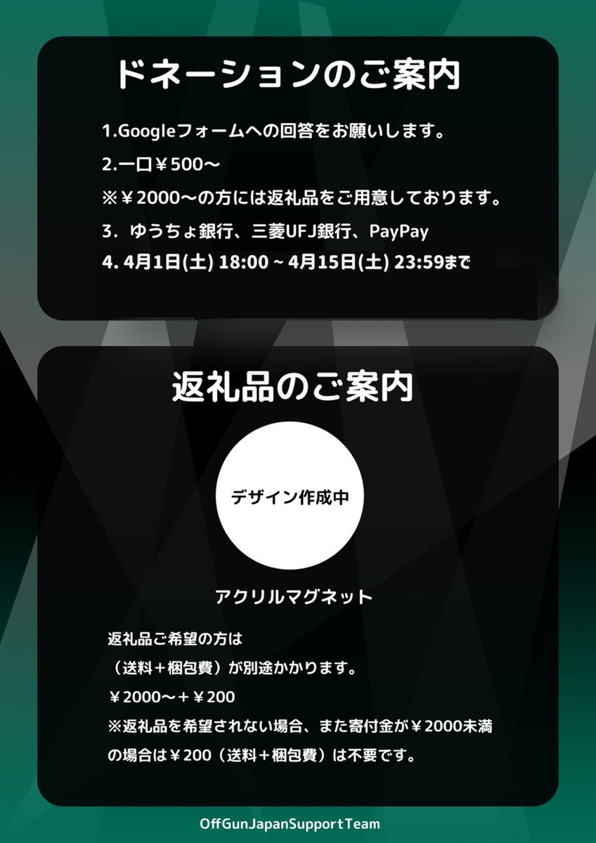 この度は多くのご協力をいただき誠にありがとうございました。お蔭様でOffGunを全力でサポートすることができました✨