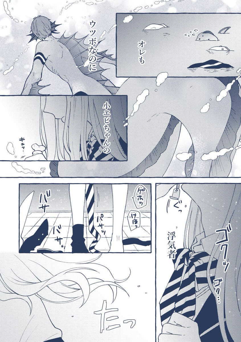 やきもちで張り合う🦈(ただし1時間しか持たなかった)と、突然のイケメンギャップで瀕死になる🦐