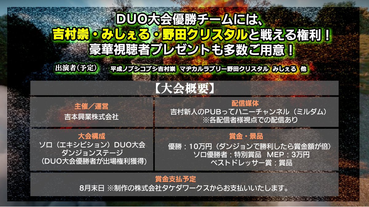 毎週土曜21時からの吉村崇PUBGモバイル配信も宜しくお願い致します!