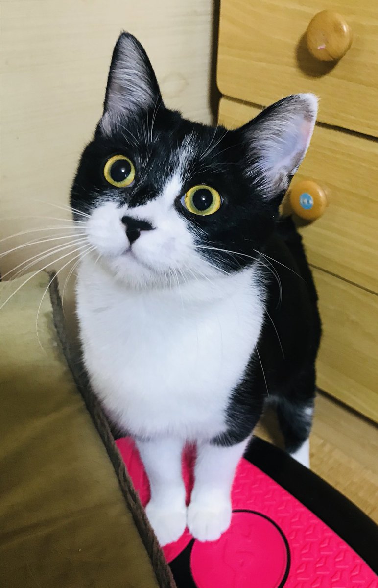遊んで欲しい時は、近づいてちょこんと座って目で訴えます。#猫