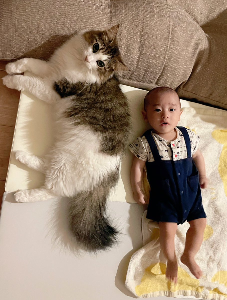 体重は同じくらいだけど、モフモフしてる分シィクの方が弟より大きいね😸