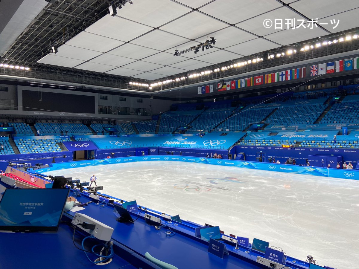 #フィギュアスケート の北京五輪会場となる首都体育館。これまでGP中国杯なども開催されてきたお馴染みの会場が、青色に染まっています。#Figure365 #フィギュア365 #日刊スポーツ #Beijing2022