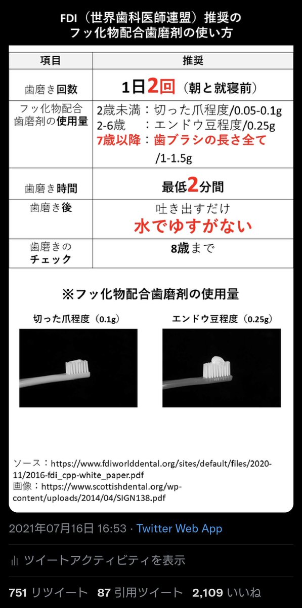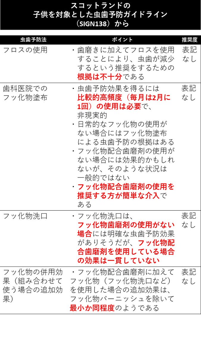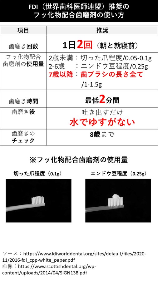 なお、「フッ素で虫歯予防は間違い」とした国や公的機関の発表は1つもありません。 twitter.com/hellomitz3/sta…