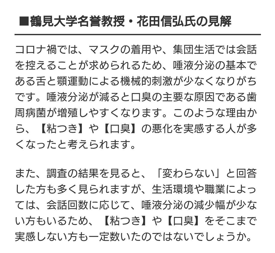 「マスクで元々あった口臭を自覚する機会が増えた」