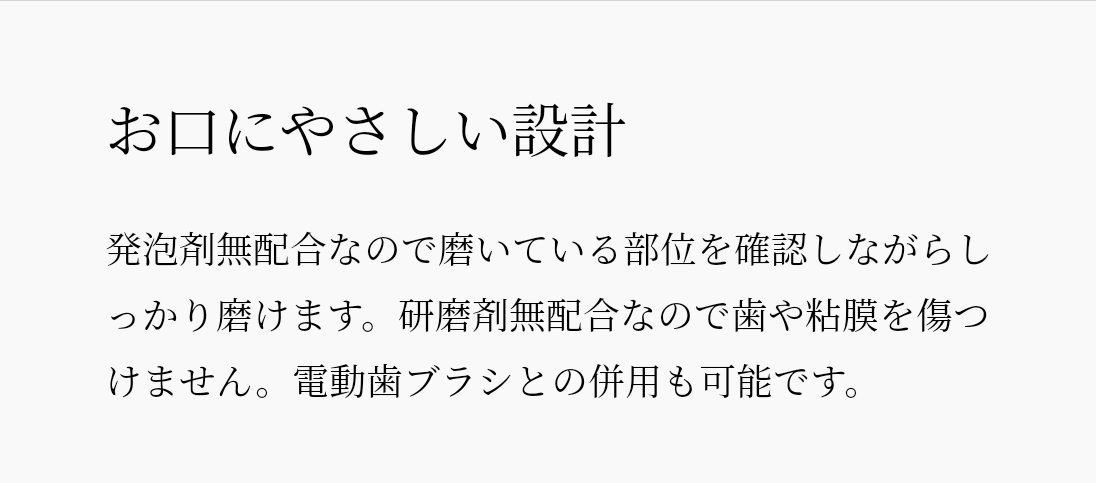 ・研磨剤無配合のため、着色を落とす力が低い