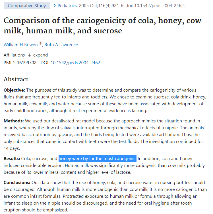 ・アメリカ歯科医師会によれば、はちみつには砂糖が含まれている