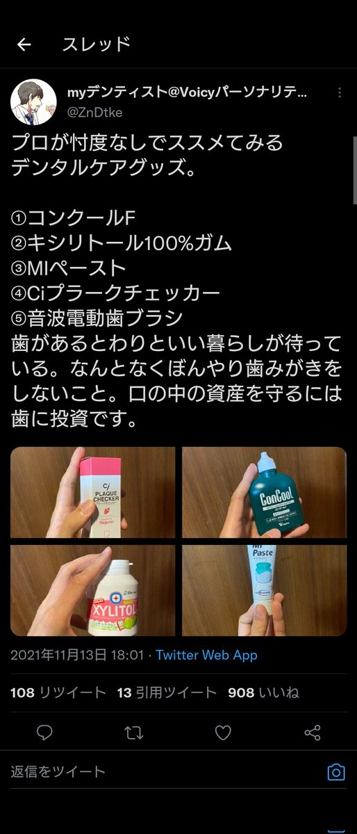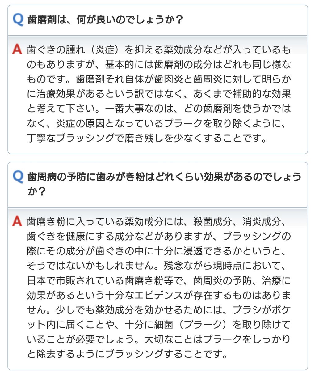 以前も言ったがこれらの製品は最強オーラルケアではありません。歯科衛生士が使ってるから良いというのは勘違いです。繰り返しますが、最強ではありません。 twitter.com/fabu123fa/stat…