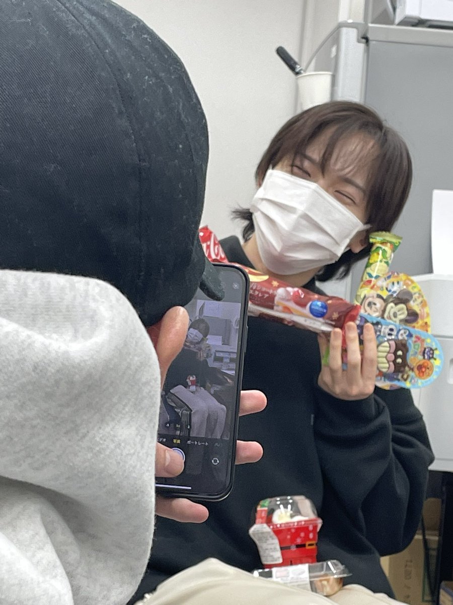 コンビニから帰ってきた山吹組とゆえとにクリスマスプレゼントって渡されていた。お菓子禁止中らしい…