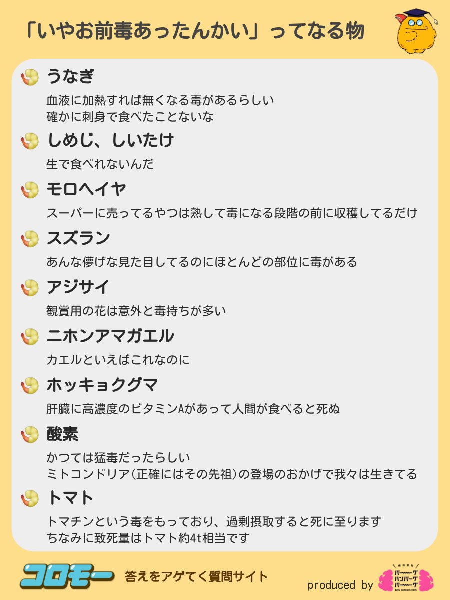 『いやお前、毒あったんかい』ってなるもの