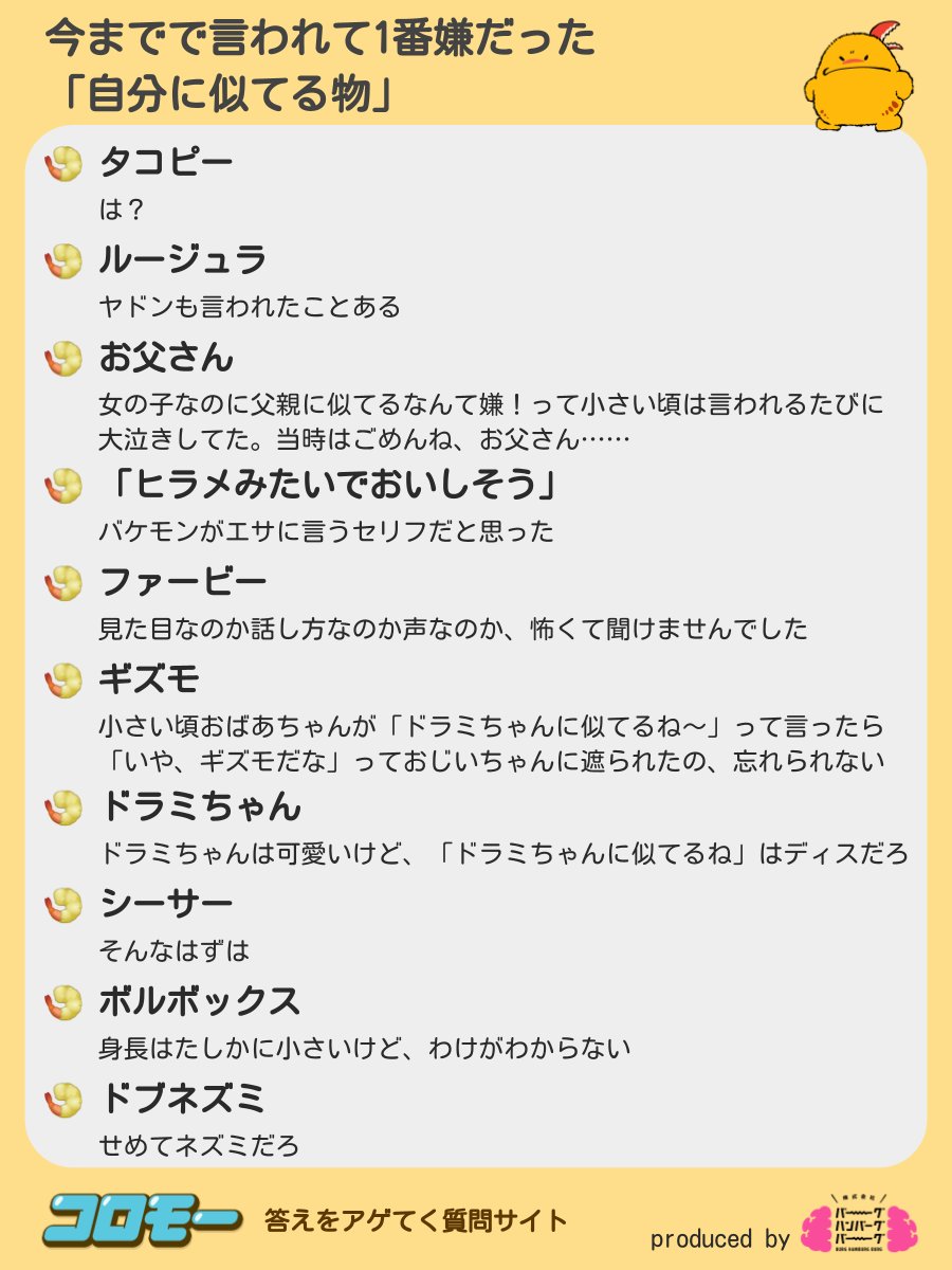 みんながアゲてくれた『言われて1番嫌だった自分に似てるもの』