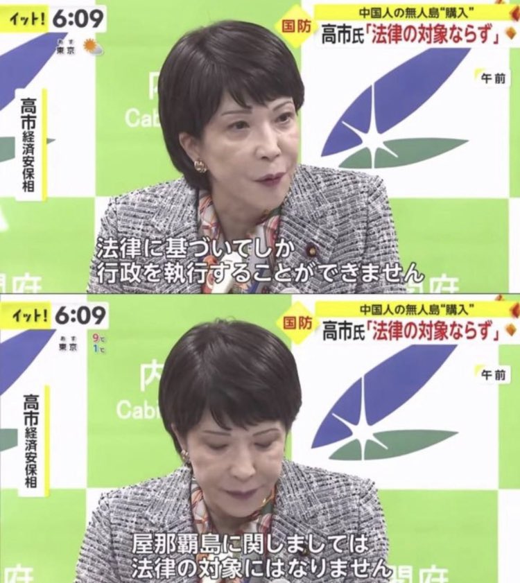 中国人に島を買われても法律上問題ないと言っちゃう高市さん