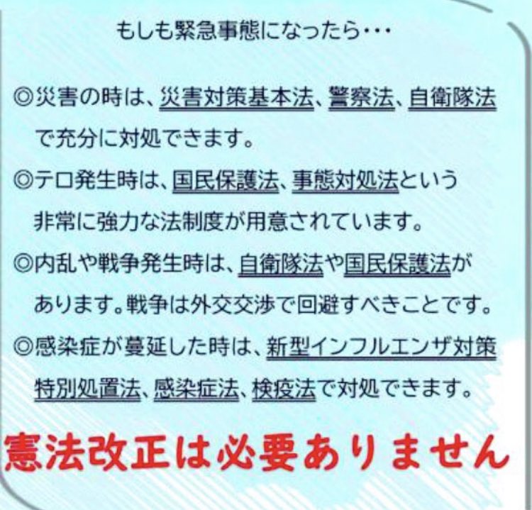 9条もですが、緊急事態条項知って下さい