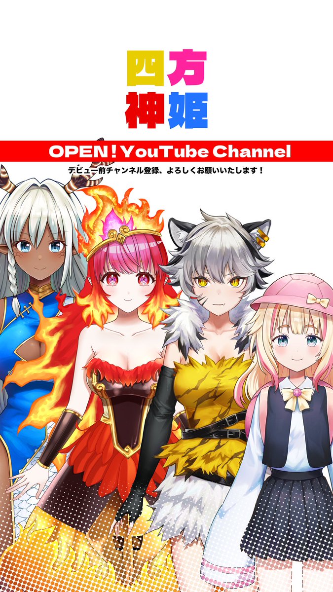 漫画「四神Vライバー」より四方神姫の4人がYouTubeを開設致しました!
