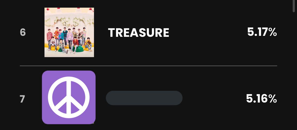 Vote ONLY FOR TREASURE. Voting for other artists negates our work to increase Treasure’s ranking.