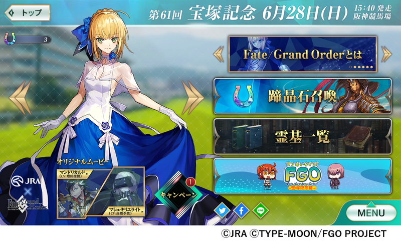 JRAとFGOの奇跡のコラボ『Fate/Grandprix Order in 宝塚記念』登場! コラボ英霊召喚 「蹄晶石召喚」やコラボムービー、あの人気マンガが楽しめる! gamebiz.jp/?p=268020
