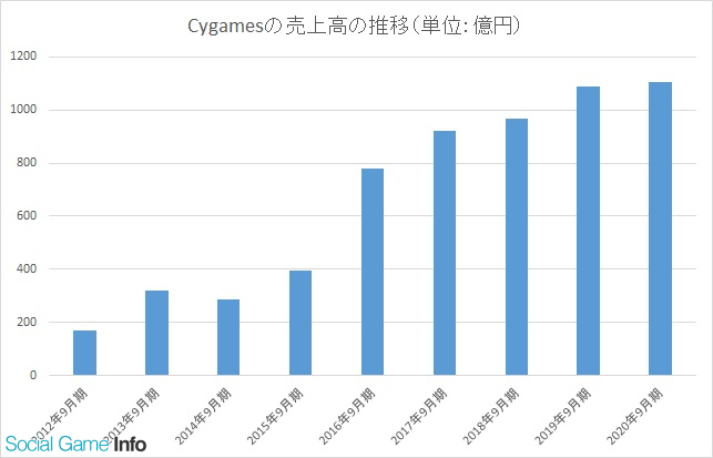 Cygames、20年9月期の決算は売上高1.6%増の1104億円、最終益43.6%増の161億円と過去最高を更新