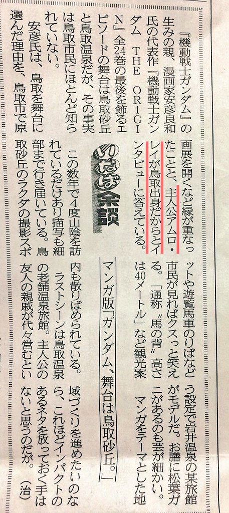 今年はガンダムのアムロが鳥取県出身の日本人と知ったのが一番衝撃的でした。とても嬉しかったです。