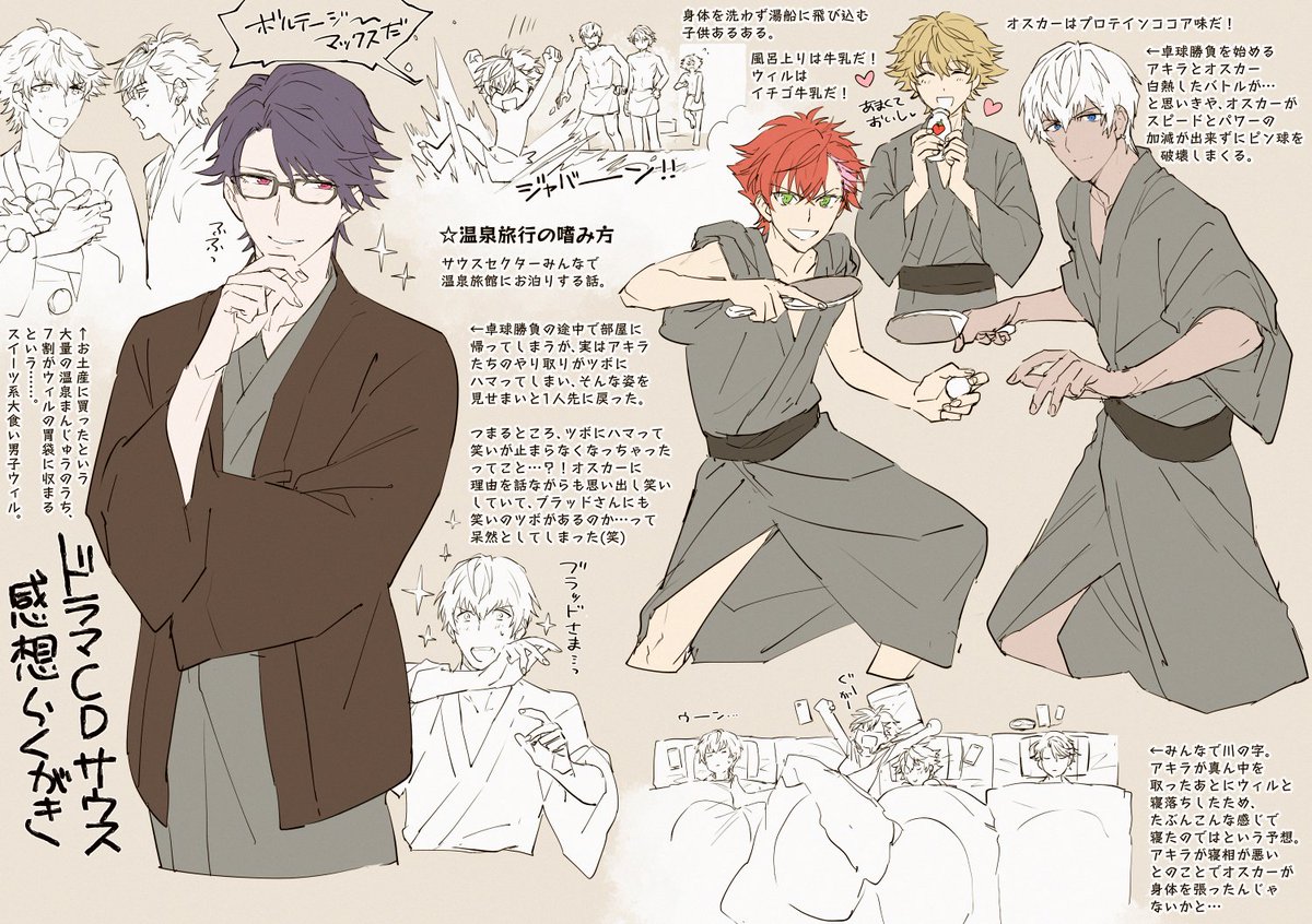 せっかくなので、昔描いた南ドラマCDのネタバレ感想らくがき(温泉旅行のみ)を置いておきますね。 こういうわちゃわちゃ楽しいお話が他にも数本収録されてるから機会があったら是非聴いてくれ。