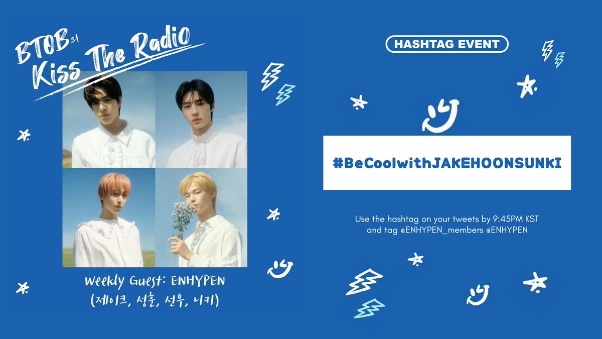 Sunoo, Jake, Sunghoon, & Ni-Ki will be on BTOB Kiss The Radio at 10PM KST!