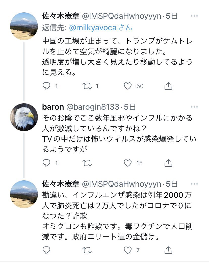 確かに自分がワクチンを打たないだけなら反ワクチンではないと思いますけど、他人に「打つな」と強制する人は反ワクチンですし、強制していなくても「冷静にデータを見た結果ワクチンには効果がないと分かった」みたいなことを毎日呟いている人は反ワクチンに含まれるんじゃないですかね。