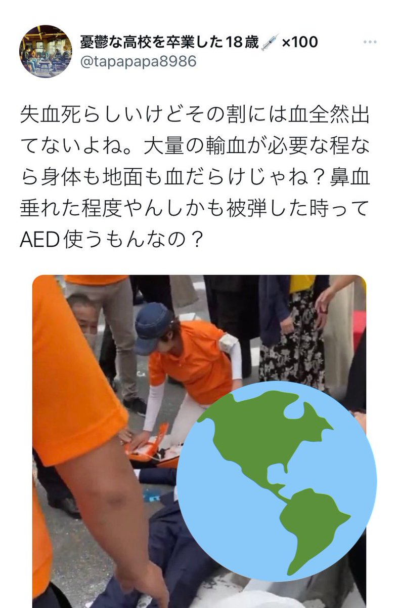 安倍さんにAED装着してる画像がモザイク無しで流れてきたけど、こういうのを完全に回避するのは難しいから苦手な人は一旦SNSから離れた方がいいと思う。