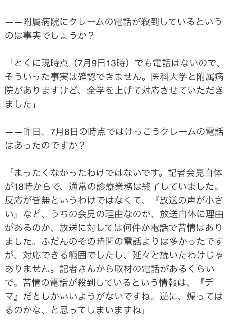 「安倍晋三元首相死去でクレーム殺到はデマ」奈良県立医大が否定、教授の会見に称賛の声