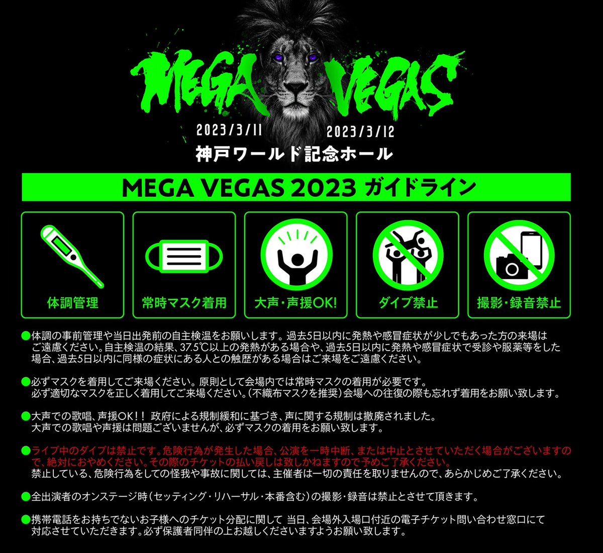 ソールドアウトになってたMEGA VEGAS 2023 3/12公演分チケットの追加販売決定!