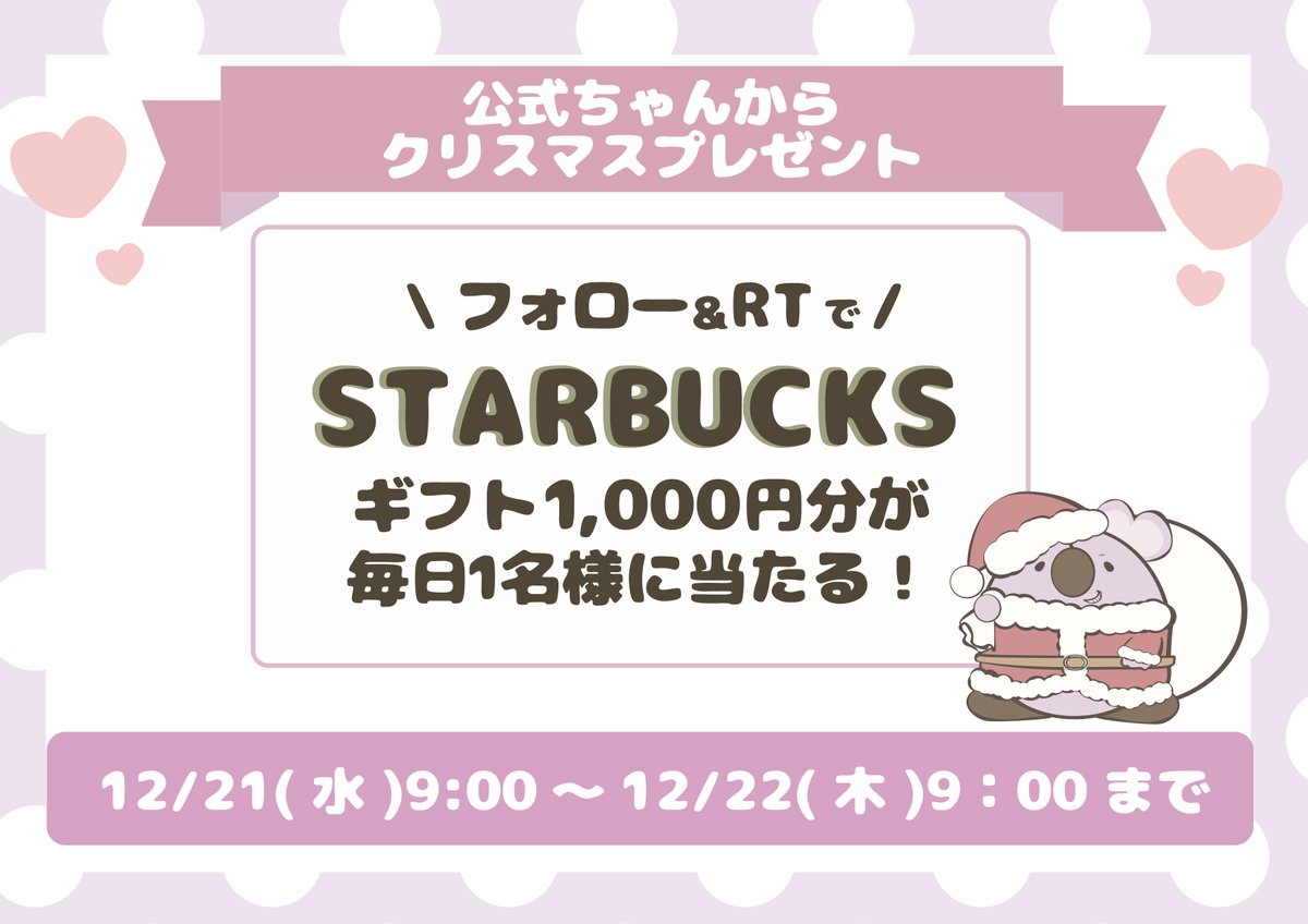 毎日1名様にSTARBUCKSギフト1,000分をプレゼント🎁