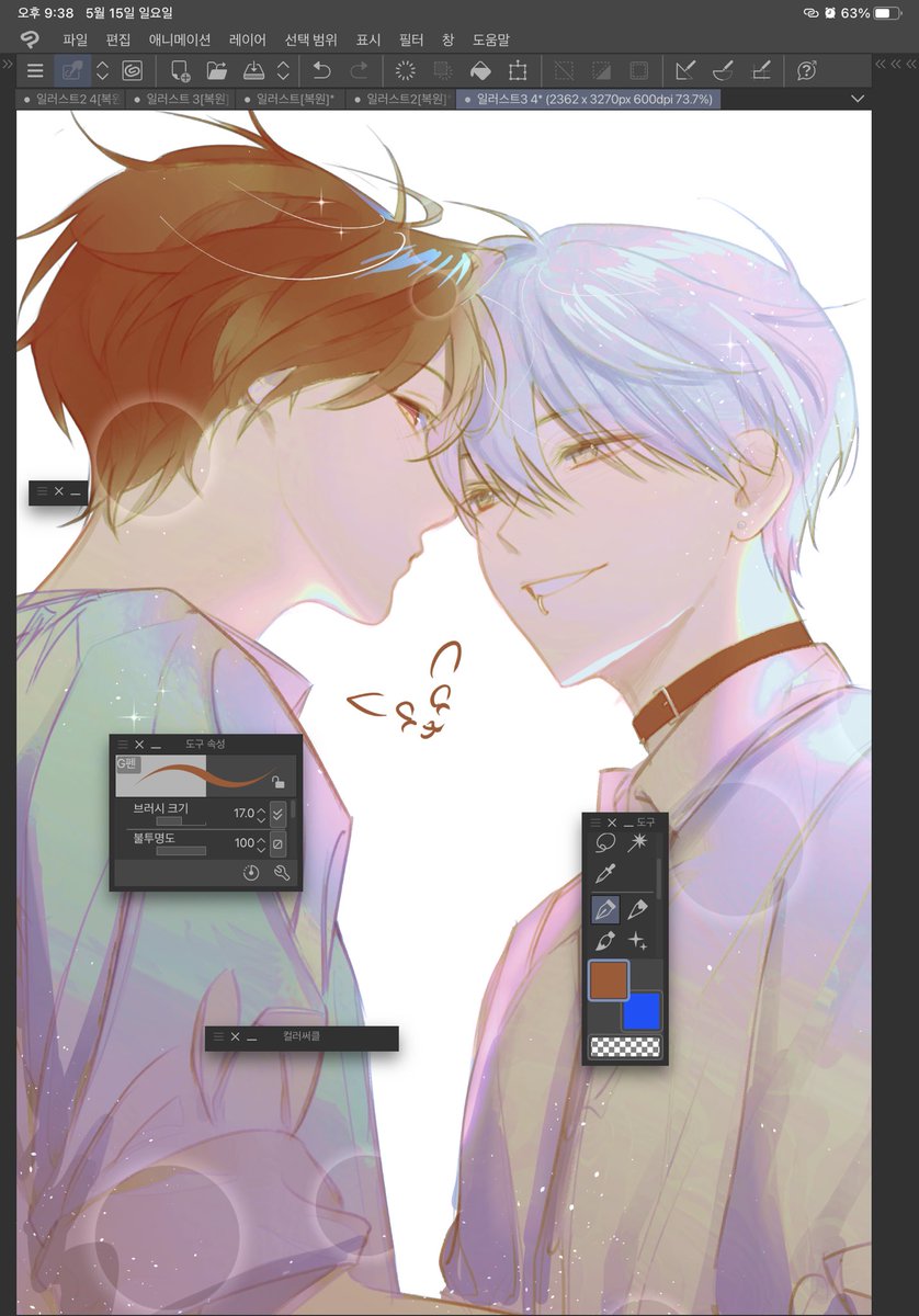 이비스로 블러처리 하는 법 알려달라고 하셔서 찍어봤어요! 제 방식으로는 모든 레이어를 병합한 후 그 레이어를 복사합니다 그리고 그 레이어를 가우시안 블러효과로 블러 처리 합니다! 마지막으로 블러 처리가 안되길 바라는 부분만 지우개로 지워주면 원하는 부분을 쉽게 블러 처리할 수 있습니다🥰