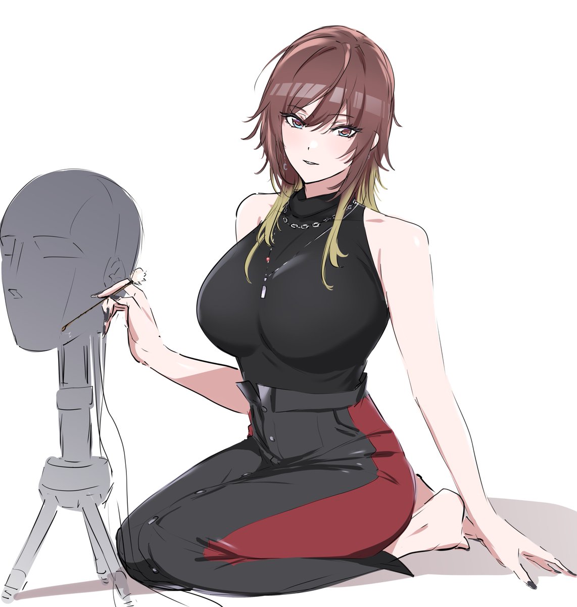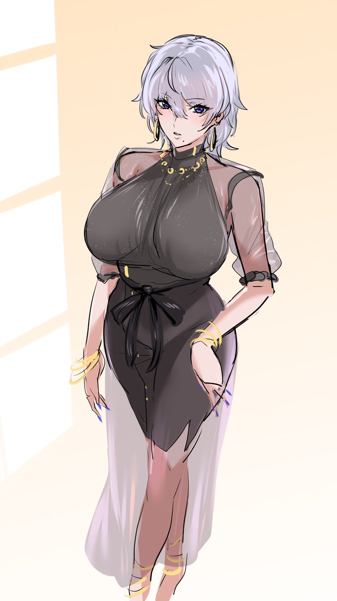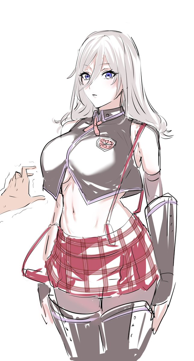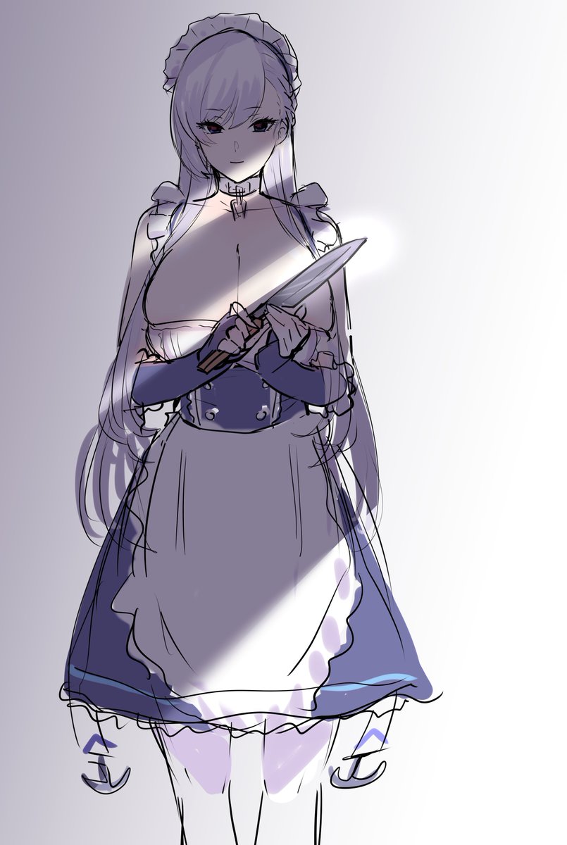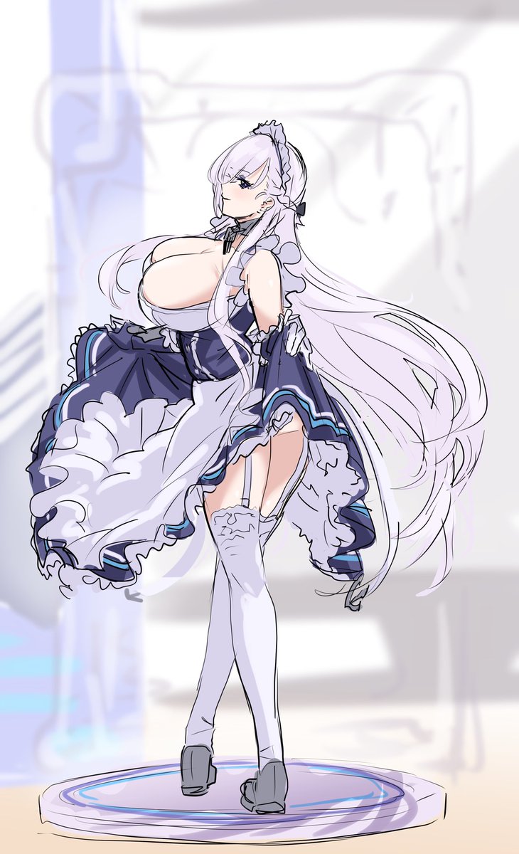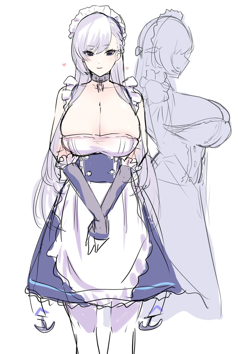公式絵でもまちまちだったから気にして来なかったけどベルファストは案外童顔だしスカート膝付近だしアームカバーは肘下。おっぱいは大きい方向に自由です。