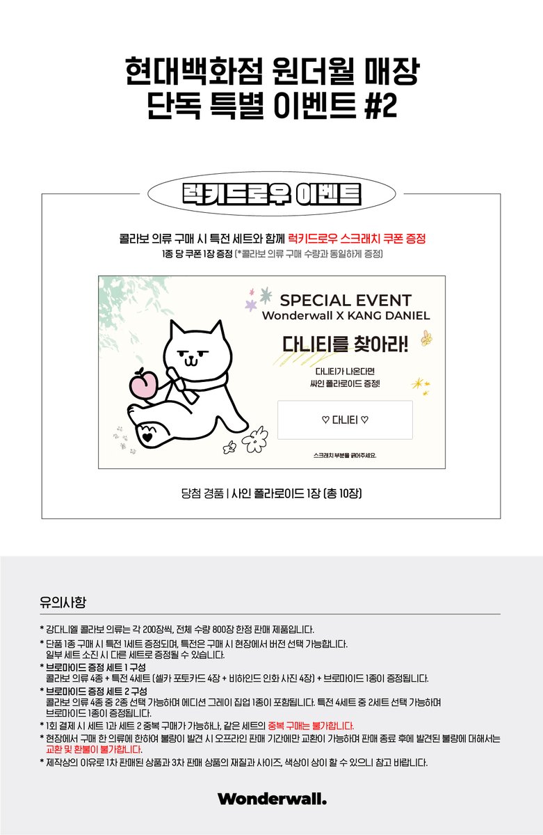 강다니엘 X Wonderwall. 현대백화점 판교점 오프라인 판매🔥