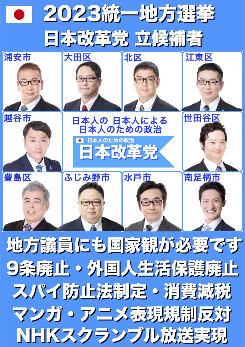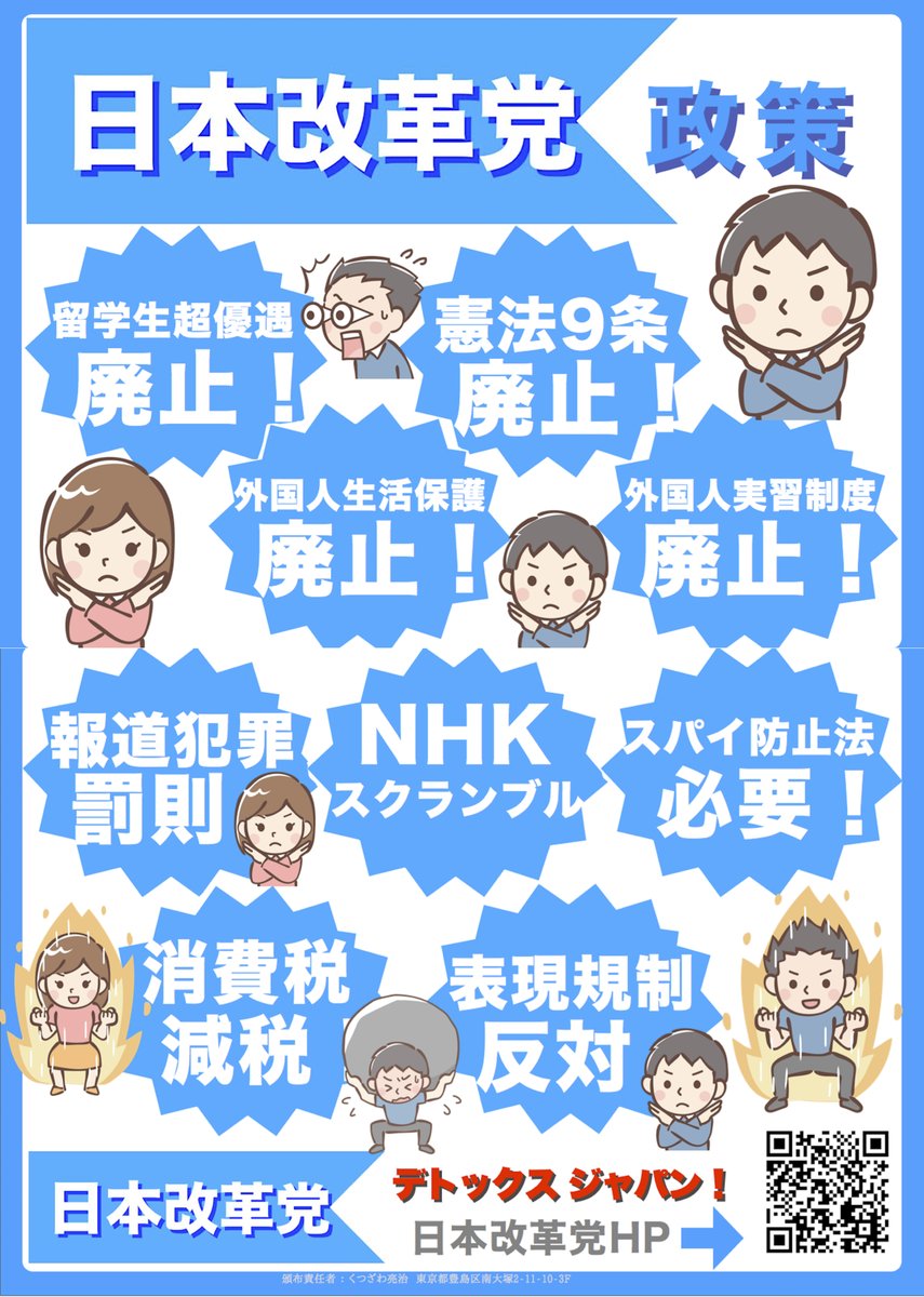 「日本人の日本人による日本人のための政治」日本改革党の詳細は、こちらをご覧ください。