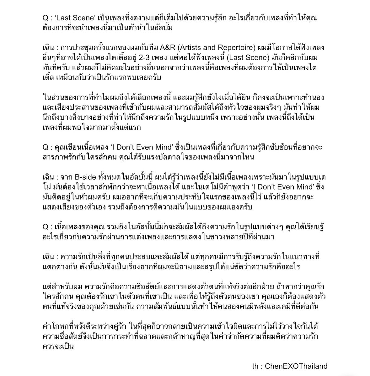 Q : เฉินมักจะคัมแบคเพลงบัลลาดหรือเพลงจังหวะช้าๆ อยากลองมีเพลงเต้นเป็นเพลงไตเติ้ลดูมั้ย