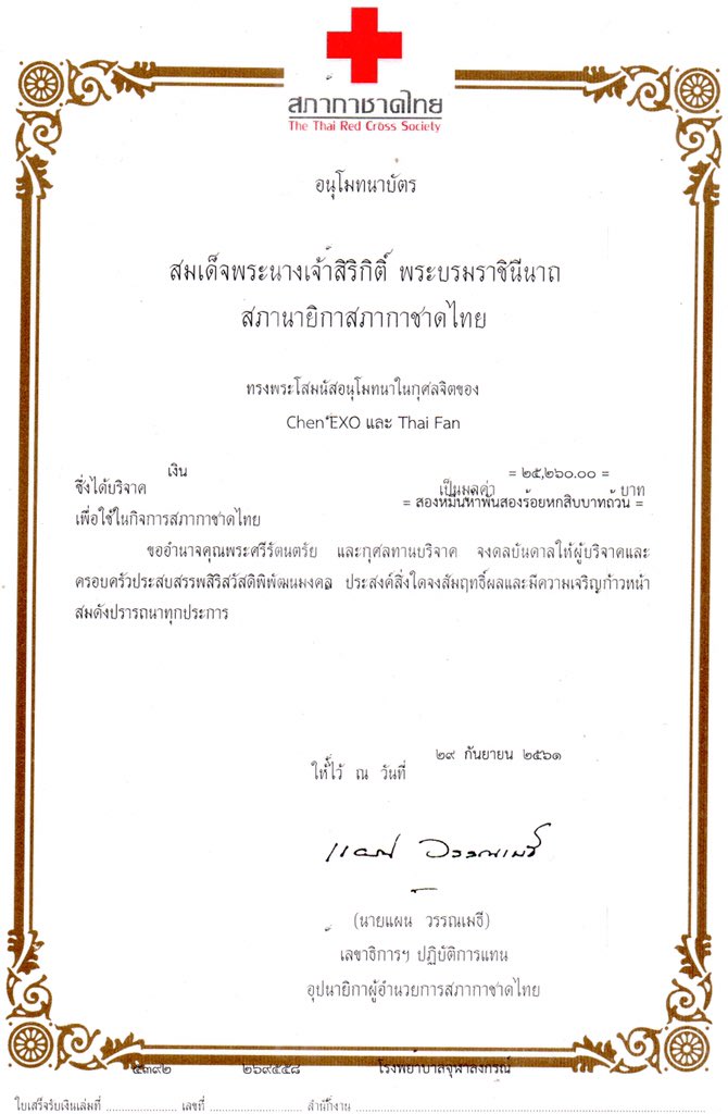 สวัสดีค่ะ ❤️ วันนี้แอดมินได้ไปที่รพ.จุฬาลงกรณ์ ทำการบริจาคเงินเพื่อการรักษาผู้ป่วยสามัญในนามของ Chen EXO และ Thai Fan โดยรับบริจาคตั้งแต่วันที่ 13/06/2561 - 25/09/2561 รวมทั้งสิ้น 25,260 บาท