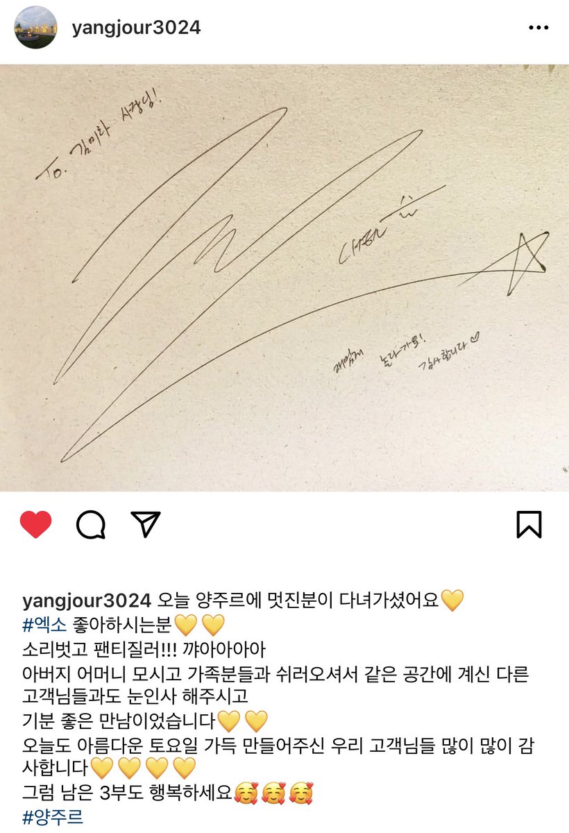 ทางร้านได้บอกว่าจงแดไปที่ร้านวันนี้และอัพรูปลายเซ็นของจงแดค่ะ 💛💛