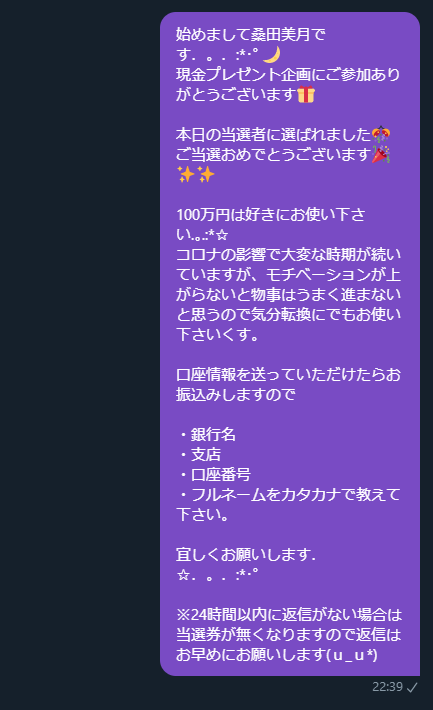 給付金企画の当選発表はTwitterのDMにて行います。