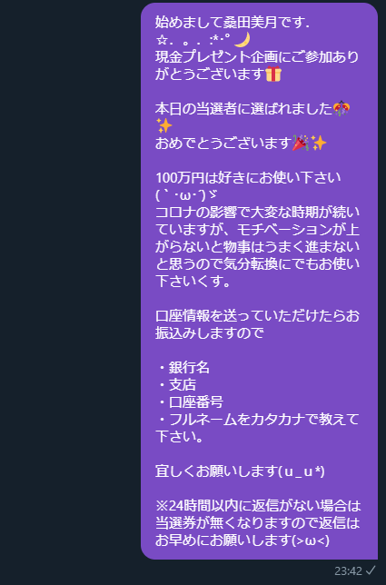 反応がない場合は当選が無効になりますので悪しからずです!!