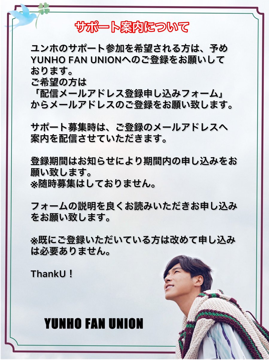 As for YUNHO's Support Recruitment Announcement