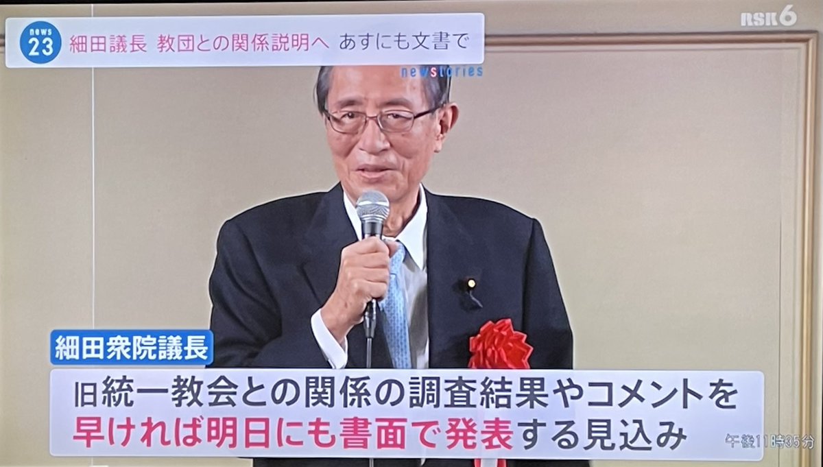 細田衆院議長、明日にも旧統一教会との関係『書面』で発表。「会見はしない」