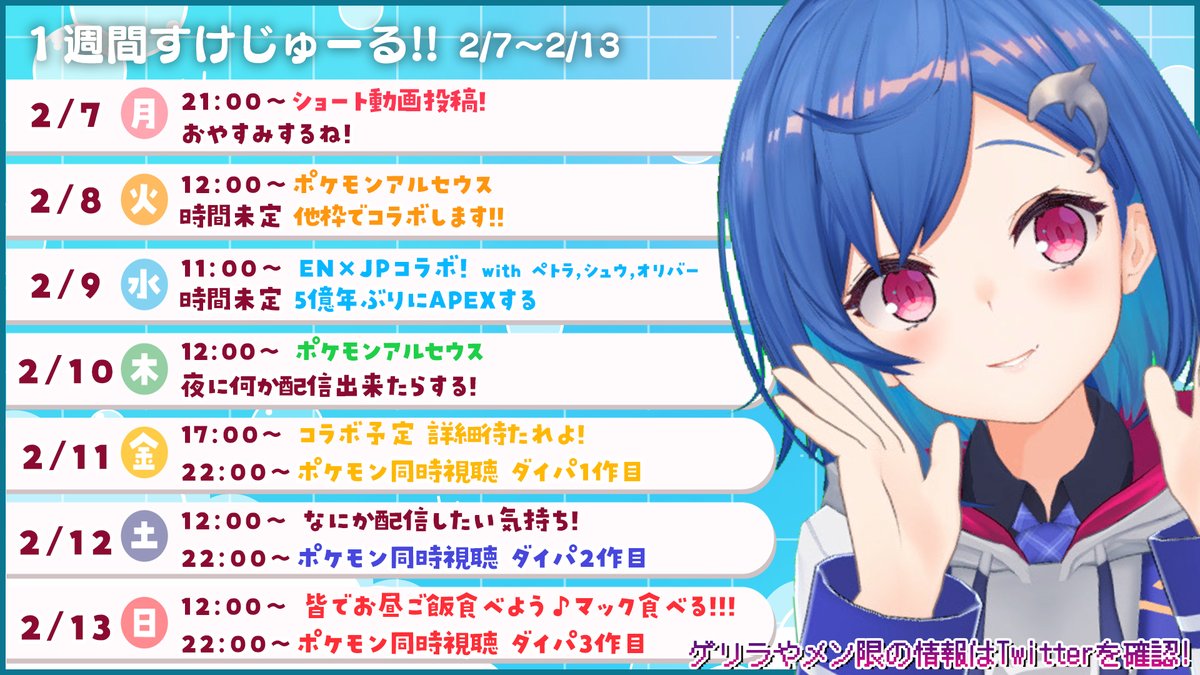 2月7日から2月13日までのざっくりスケジュールです