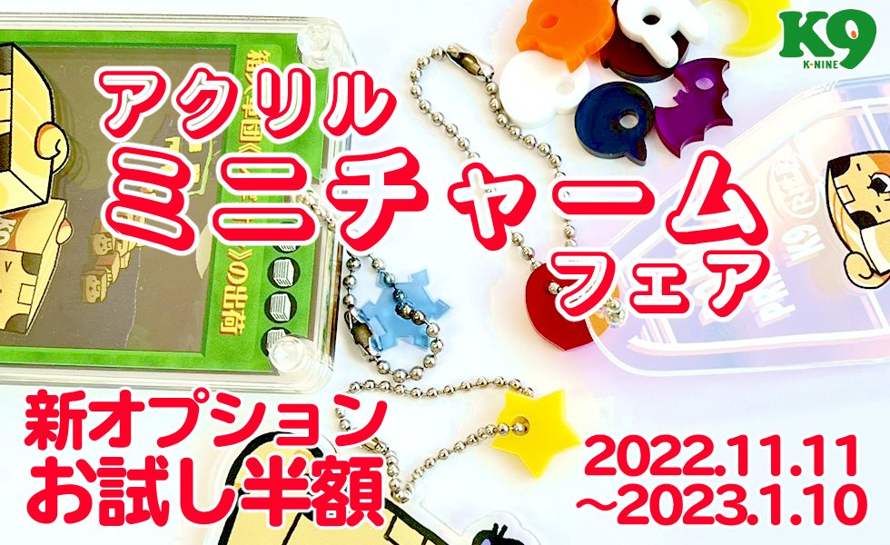 アクリルグッズ新オプション”ミニチャーム”を公開しました。あわせて期間限定で半額の「アクリルミニチャームフェア」を開催します!