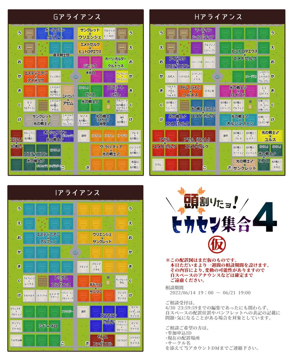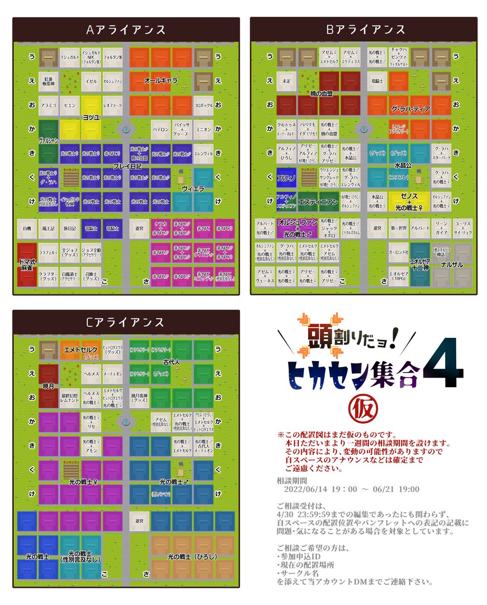 各サークルのスペース位置のアナウンス等が解禁となります