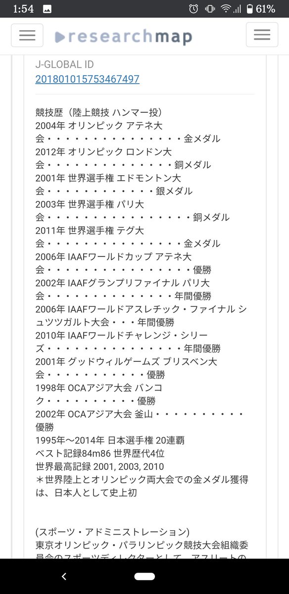 室伏広治、博士号持ってるしオリンピックメダリストだし医科歯科大教授だしスポーツ庁長官だし何なんこの人。