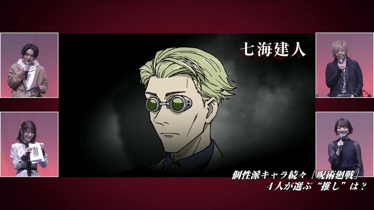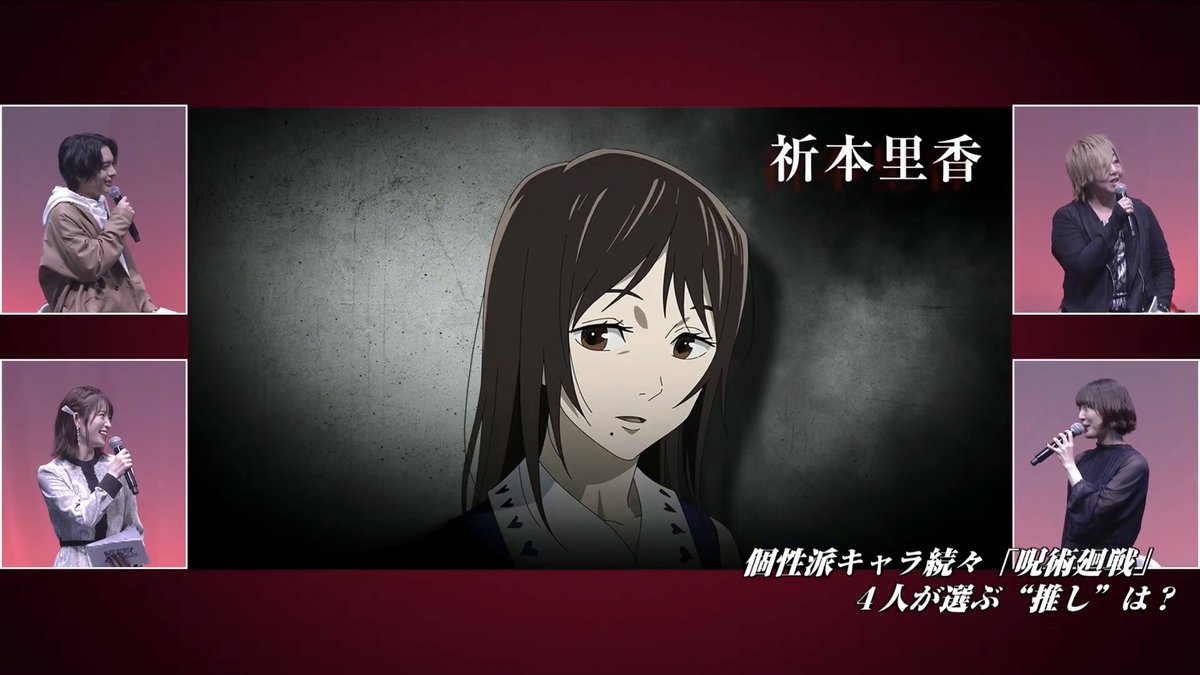 Ogata-san’s (Yuta’s seiyuu) favorite is Orimoto Rika Hanazawa-san’s (Rika’s seiyuu) favorite is Okkotsu Yuta Komatsu-san’s (Maki’s seiyuu) favorite is Inumaki Toge Enoki-san’s (Itadori’s seiyuu) favorite is Nanami Kento