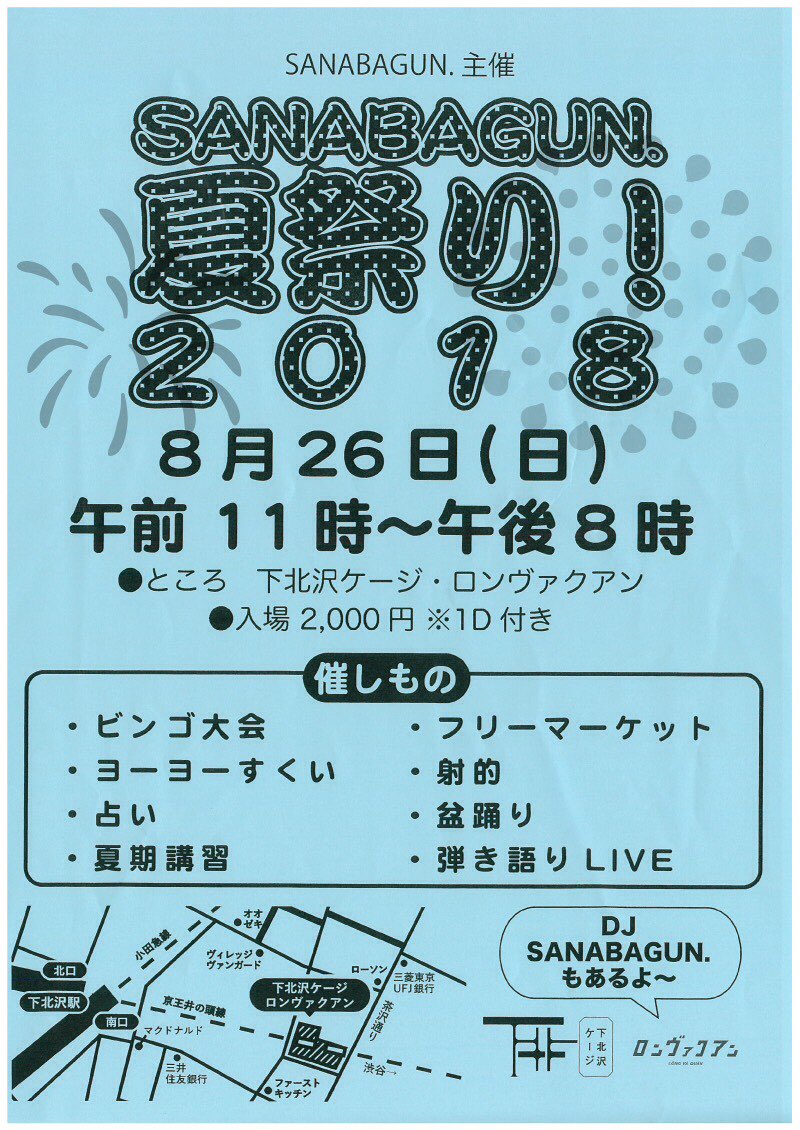7/28(日) WHITE STAGE SANABAGUN.出演決定!!