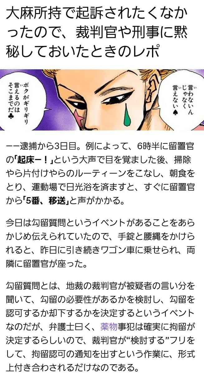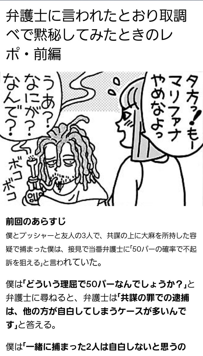 モーメントが使えなくなったので、togetterを更新しました。見やすいです。「大麻取締法違反で捕まってみた」 togetter.com/li/2016581