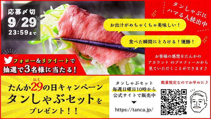 毎月29日は「たんか肉の日」❗️今回は抽選で3名様に【牛タンしゃぶしゃぶセット(定価5980円)】をプレゼント✨
