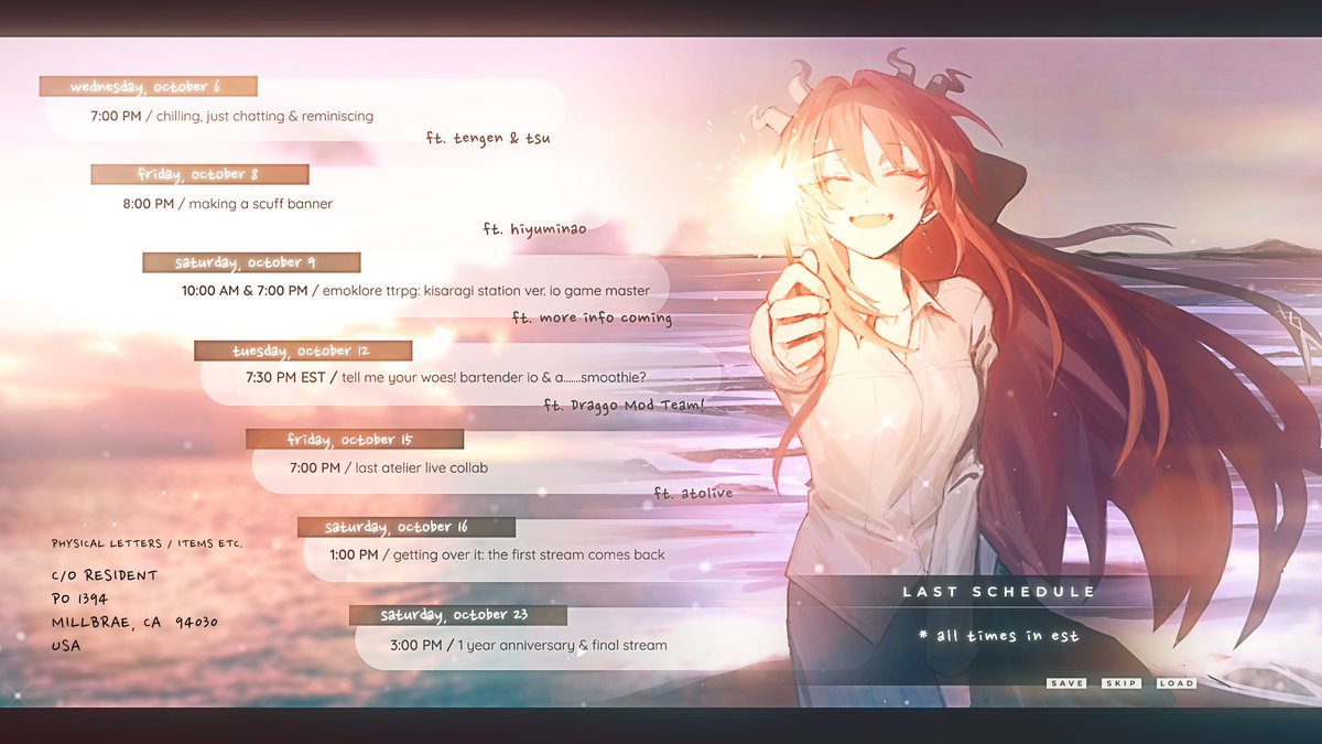 Physical Letters / Items 💐 (bottom left of schedule)